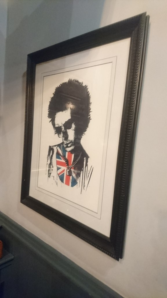 This time, our voyage in search of glorious roasty goodness was a bit more troublesome. The original plan was the Red Lion, one of the UAB pubs up in the Jewellery Quarter and one that comes well recommended as to their Sunday dinners. Well, maybe the dinners are nice, but it seems that booking is harder than it looks; we sent a booking request by email and never heard back, and rang a couple of times in the week and never got the phone answered, so on a windy and wet Sunday we decided to just take a chance and drop in unannounced. And, in their defence, they tried to be helpful, tried to find us a table… and failed. All full up. This was doubly disappointing since they were well-provided with wall art of mutant dead celebrities, which we’d decided was obviously fully on-brand after last time’s trip to the Lord Clifden.
